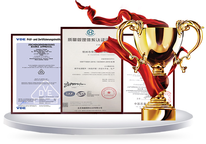 中國CQC認(rèn)證 、美國UL認(rèn)證 、 德國VDE認(rèn)證 、歐共 體CE認(rèn)證